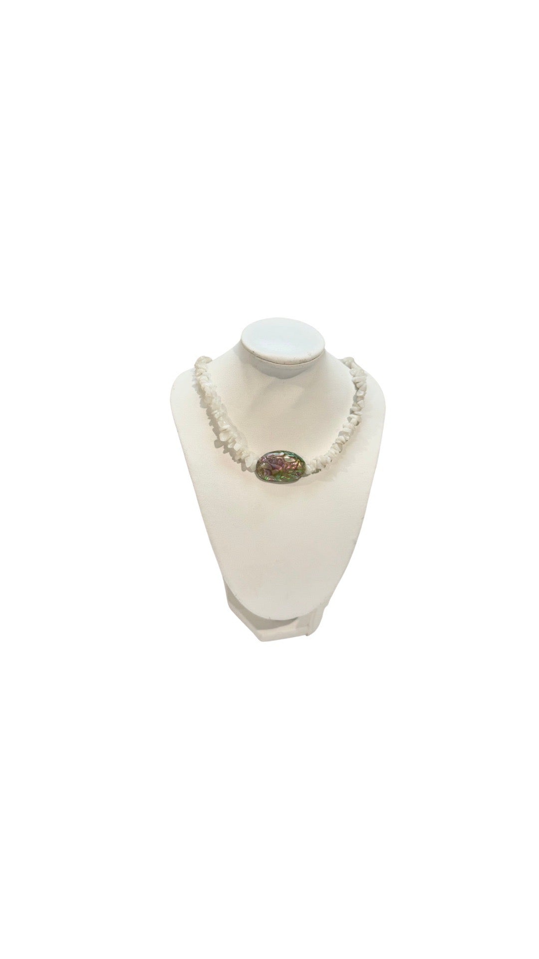 100% of the proceeds for this necklace go to the Kerr county flood relief fund. This necklace is made out of an abalone shell and rocky stone beads from my high school jewelry making supplies, enjoy!