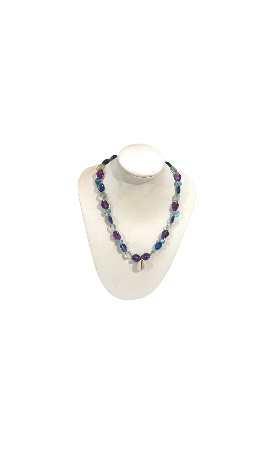 100% of the profit from this necklace will go to the flood relief fund for Kerr county. This necklace is made out of multicolored glass beads and seashell.