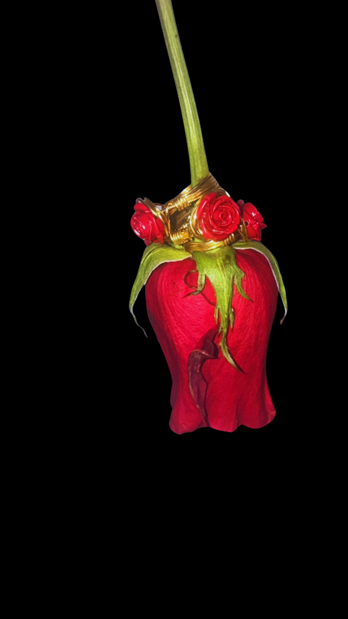 Experience everlasting love with my Rose Ring. Embrace the delicate symbol of love with a unique Glass rose delicately wrapped in gold filled wire. Each ring is a one-of-a-kind piece to cherish forever.